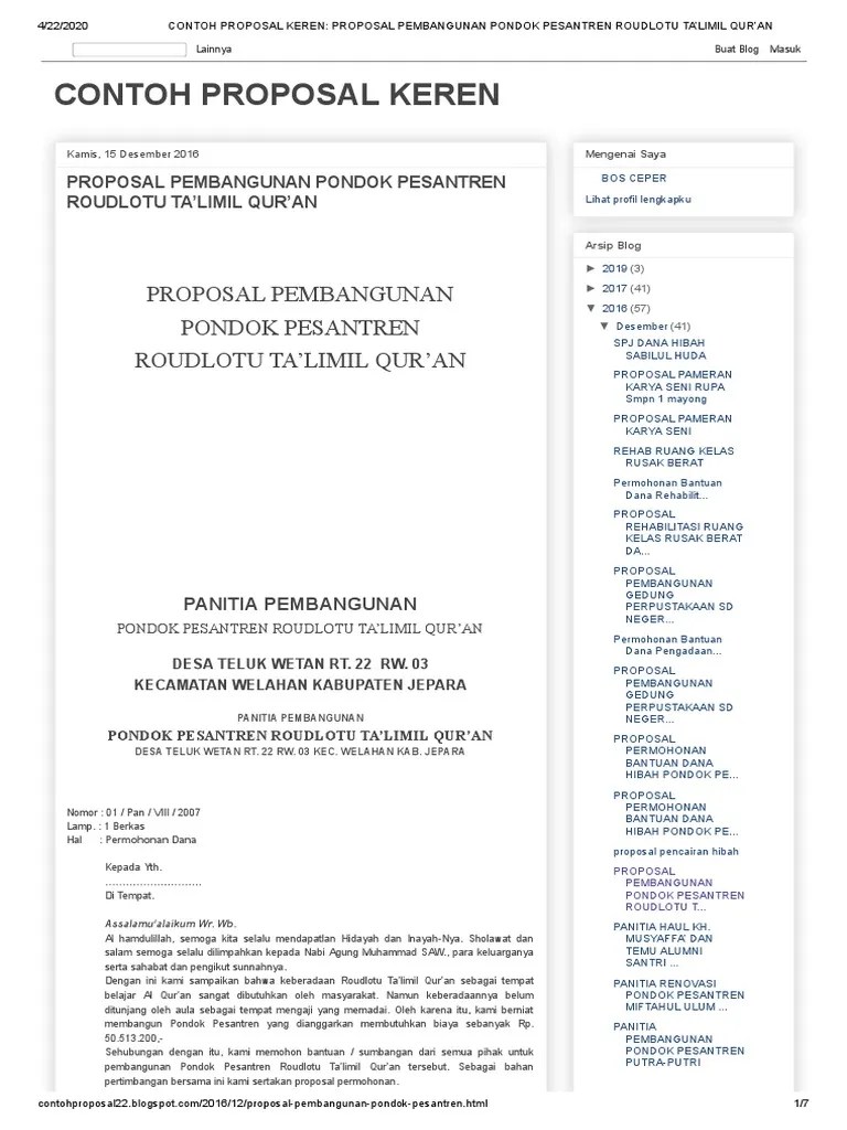 Proposal program smk berbasis komunitas (pesantren) smk raden katong. Menetapkan susunan unit pengelola keuangan dan unit pengelola kegiatanyang terdiri atas panitia perencana, panitia pelaksana dan panitia pengawas . Untuk blk komunitas ponpes contoh proposal blk kmnts proposal pesantren . Proposal bantuan untuk pembangunan 1 (satu) unit gedung workshop. Berita · pengumuman & info · jdih · informasi publik · lpse.